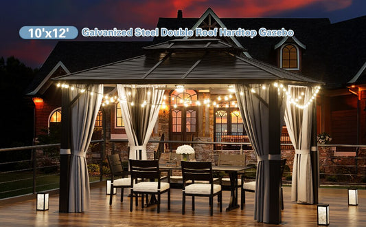 10' x 12' Hardtop Gazebo Double Roof Canopy, Aluminum Frame with Curtains. Pair with the EZ-Way Gazebo Magnetic Screen for easy Entry and Exit.