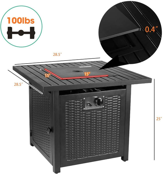 28" Gas Fire Pit Table Square Table W/ Cover, 50,000 BTU, CSA certification and safety valve.