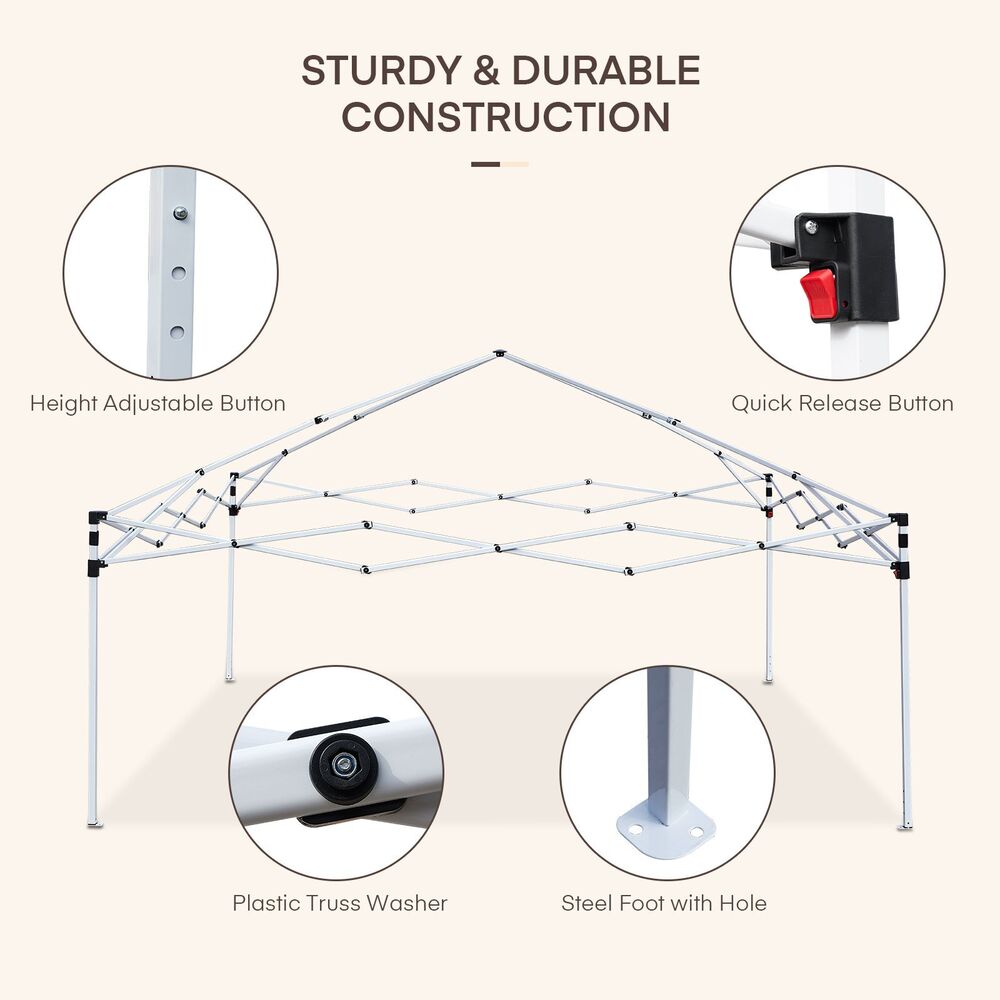 Height Adjustable: The outdoor steel gazebo is equipped with a height adjustable frame. That means you can adjust the height of the canopy tent to 73.2 inches, 74.8 inches, 76.4 inches respectively to suit different usage environments. You're sure to feel cool, safe and comfortable in the backyard, camping, picnic or other outdoor activities.