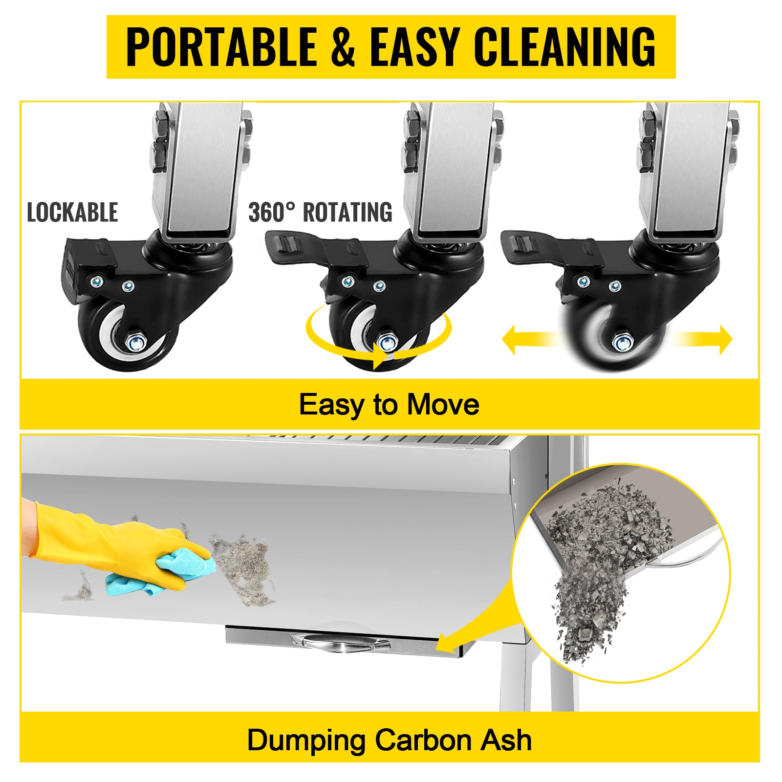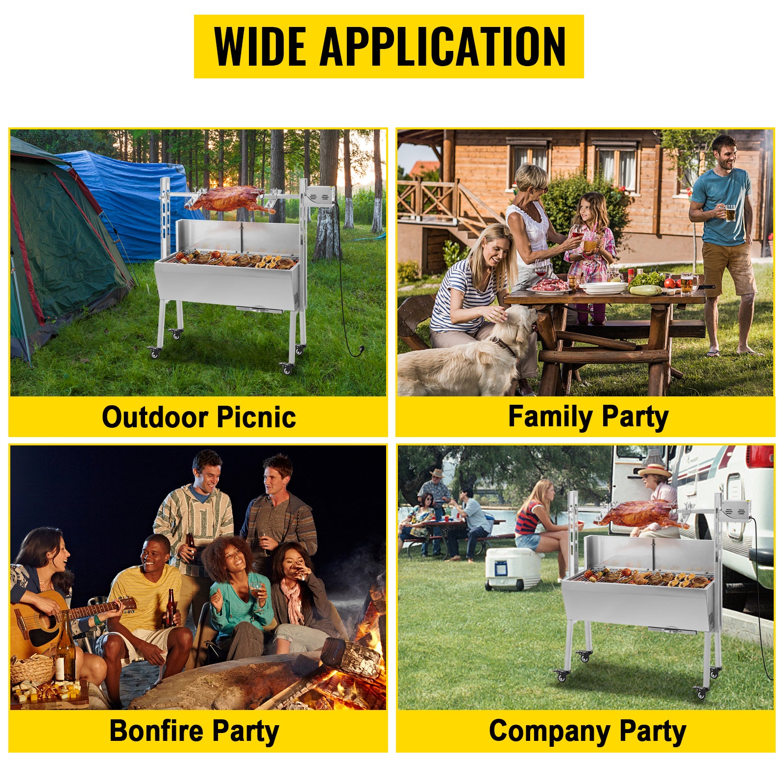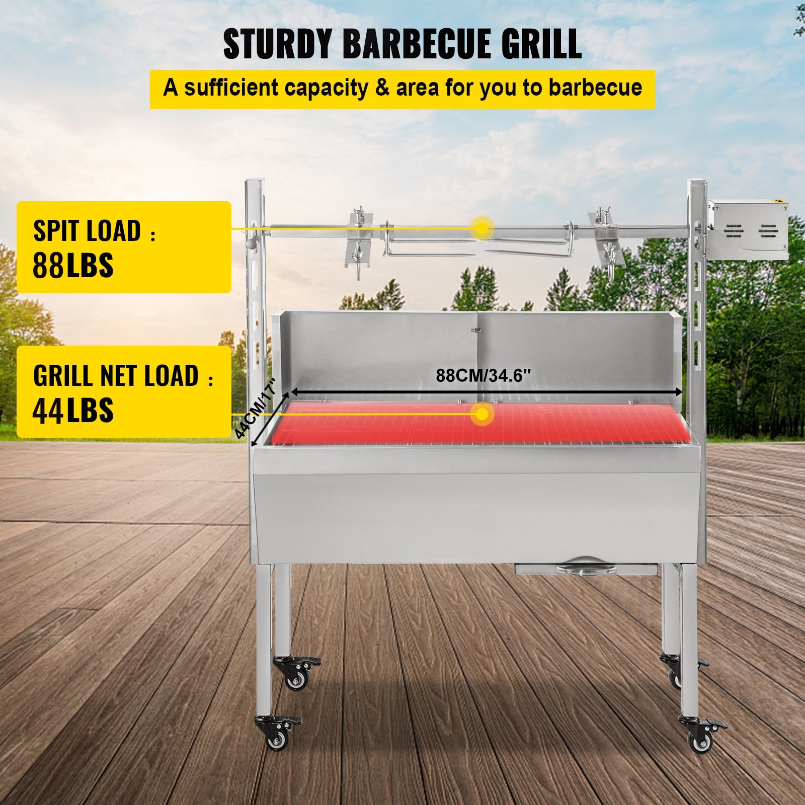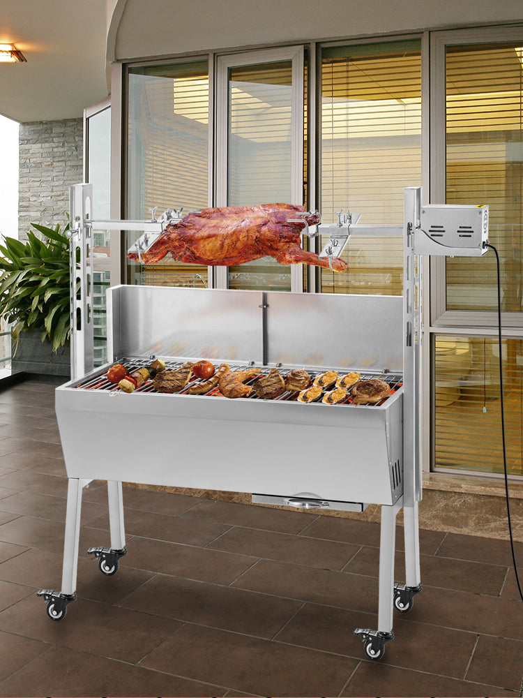 Electric Roaster BBQ Rotisserie Grill W/ Lockable Wheels, Outdoor Camping Barbecue
