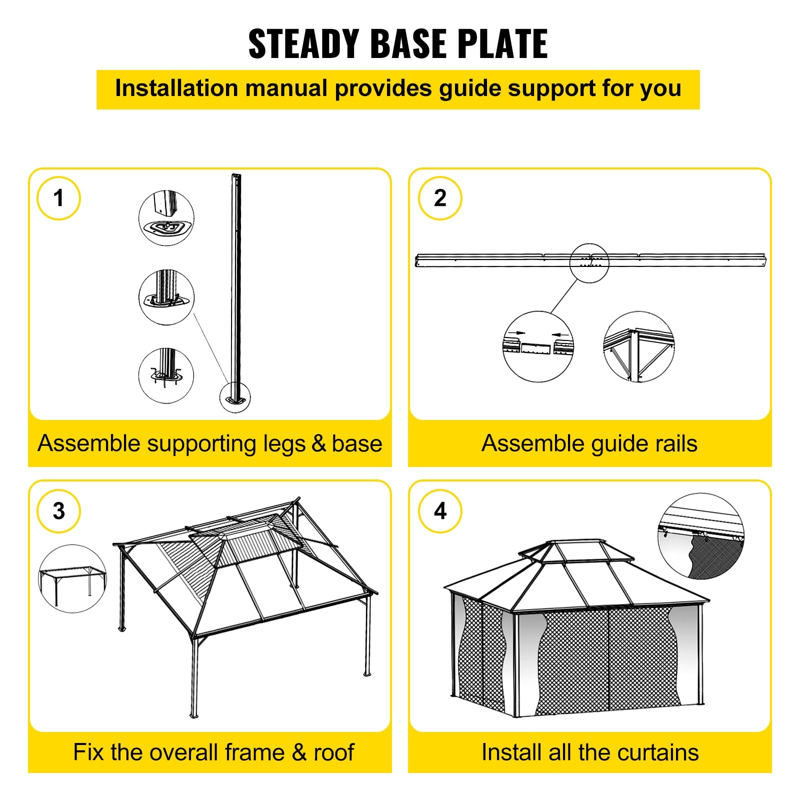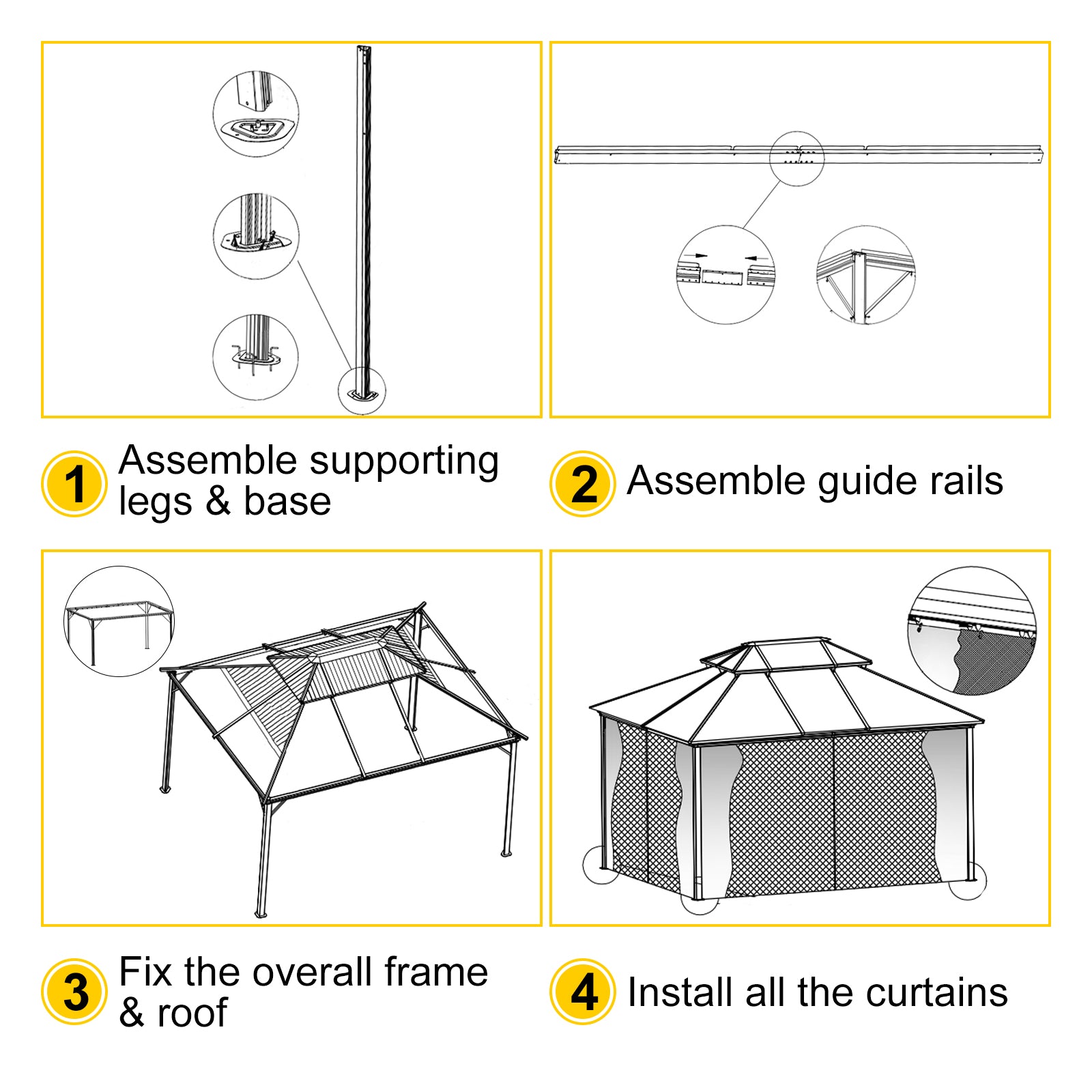 Our patio gazebo is designed with netting. The gazebo is made of a rust-proof aluminum frame and water-proof and fade-proof fabric to protect from rain and sun. The elegant gazebo is an excellent choice for you to enjoy life in good time. BTW, this product is sent in two packages. Pair with Gazebo EZ-Way Magnetic Screen for Easy entry and Exit with Ease!!