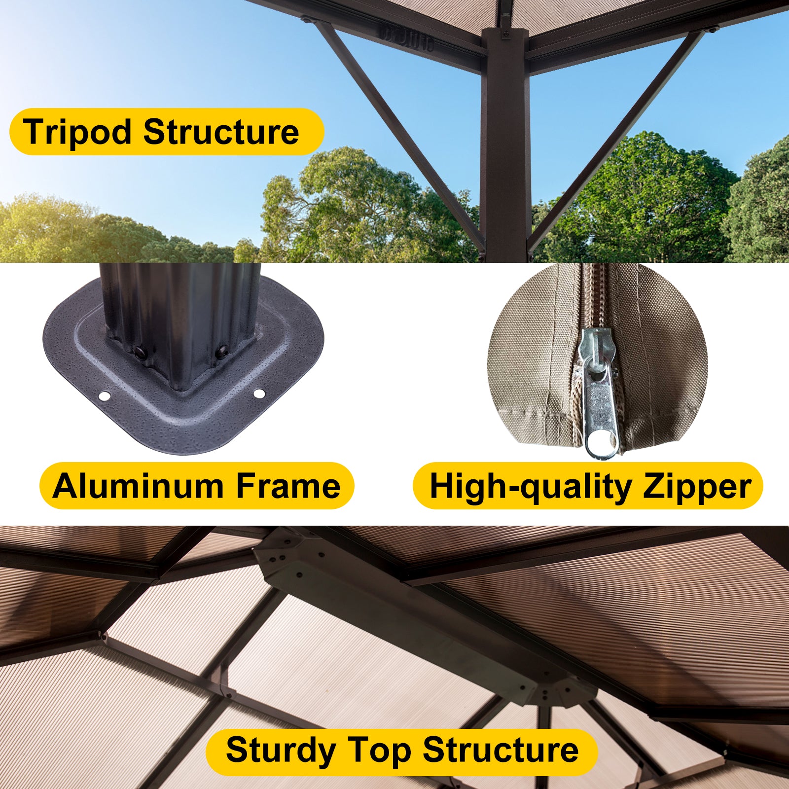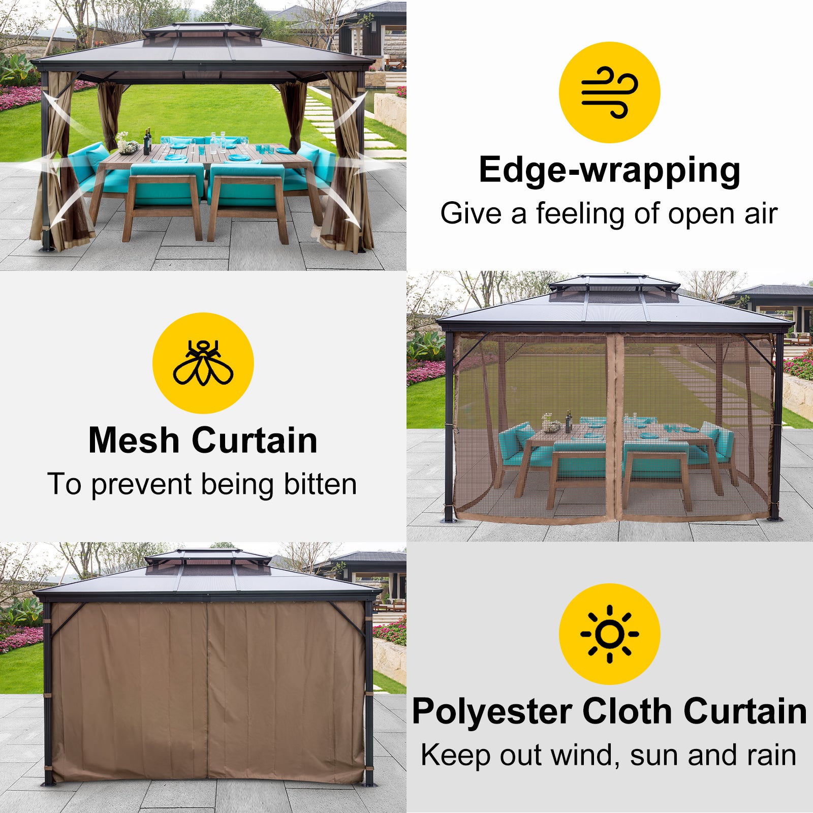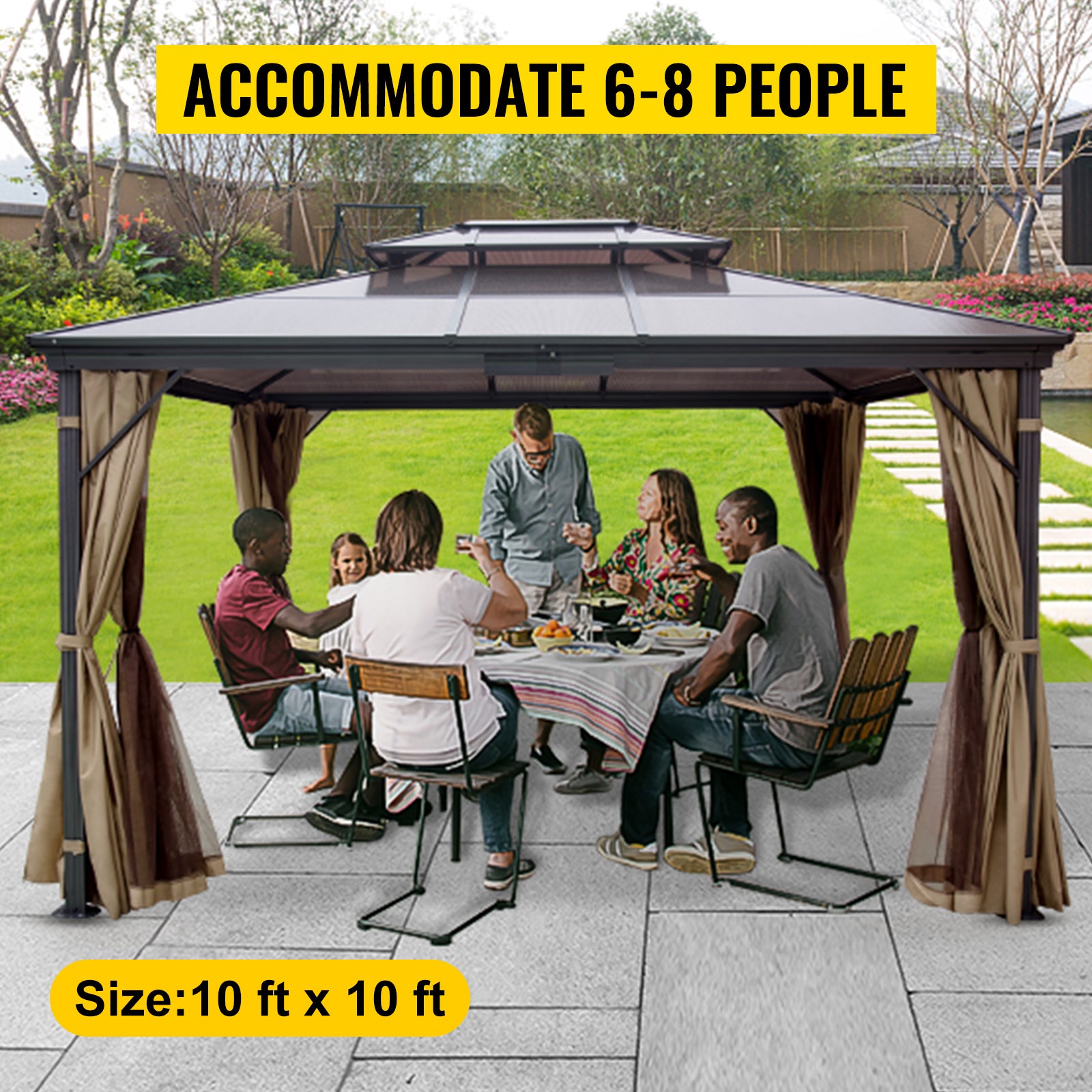 10'x10' or 10'x12' Gazebo Hardtop Canopy, Pair with the Gazebo EZ-Way Magnetic Screen for Easy Entry and Exit