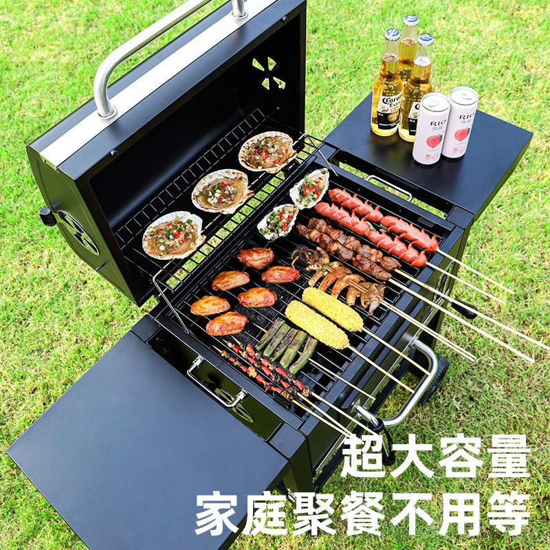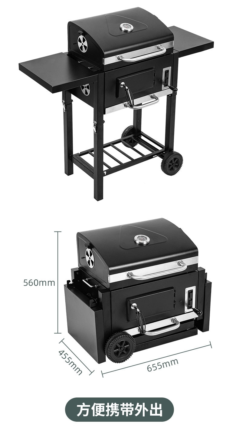 - Front door with cool-touch handle design, make easy access for stoking coals or adding charcoals during cooking. Also features with minimum heat loss.